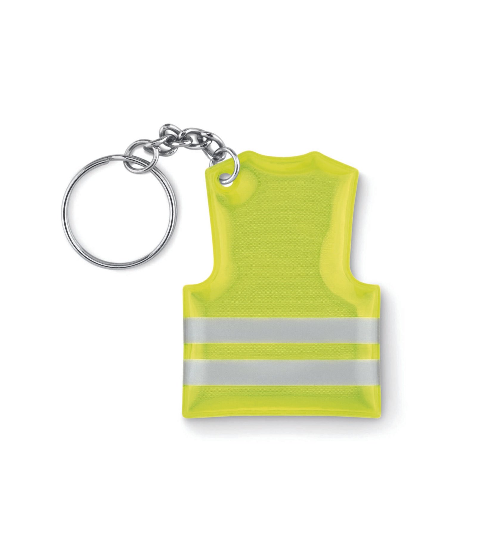 Odblaskowy brelok z PVC w kształcie kamizelki.