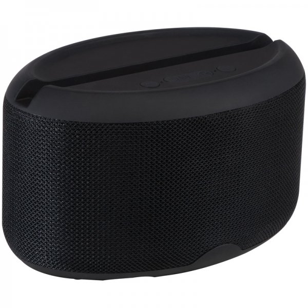Głośnik Bluetooth z miejscem na telefon lub tablet. Dostępny w czarnym kolorze.
