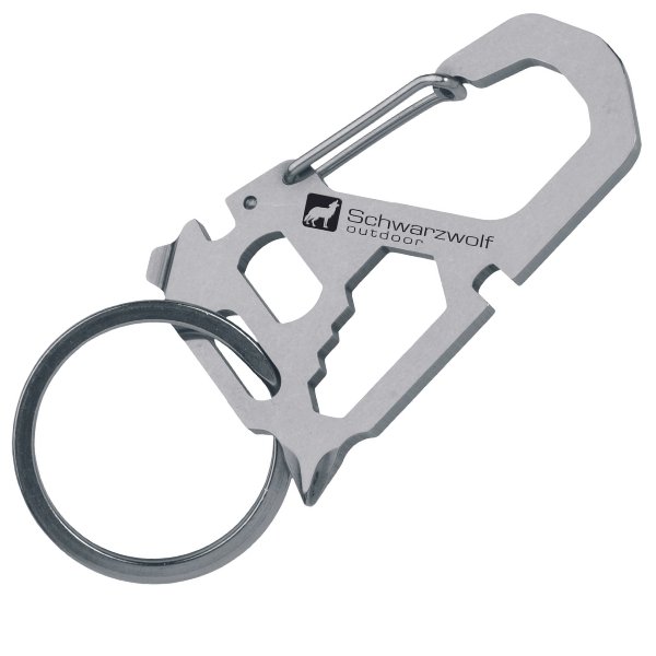 Wielofunkcyjny brelok marki Schwarzwolf zawierający 10 różnych narzędzi, w tym